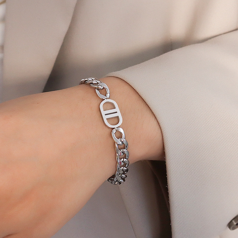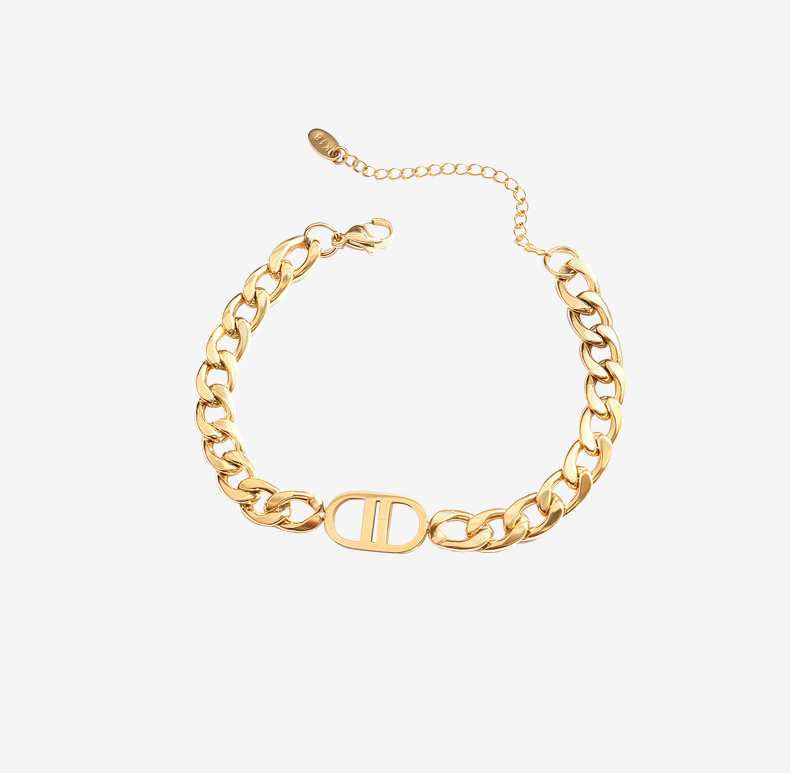 Square Shape OT Buckle Chunky Chain Necklace & Bracelet Set