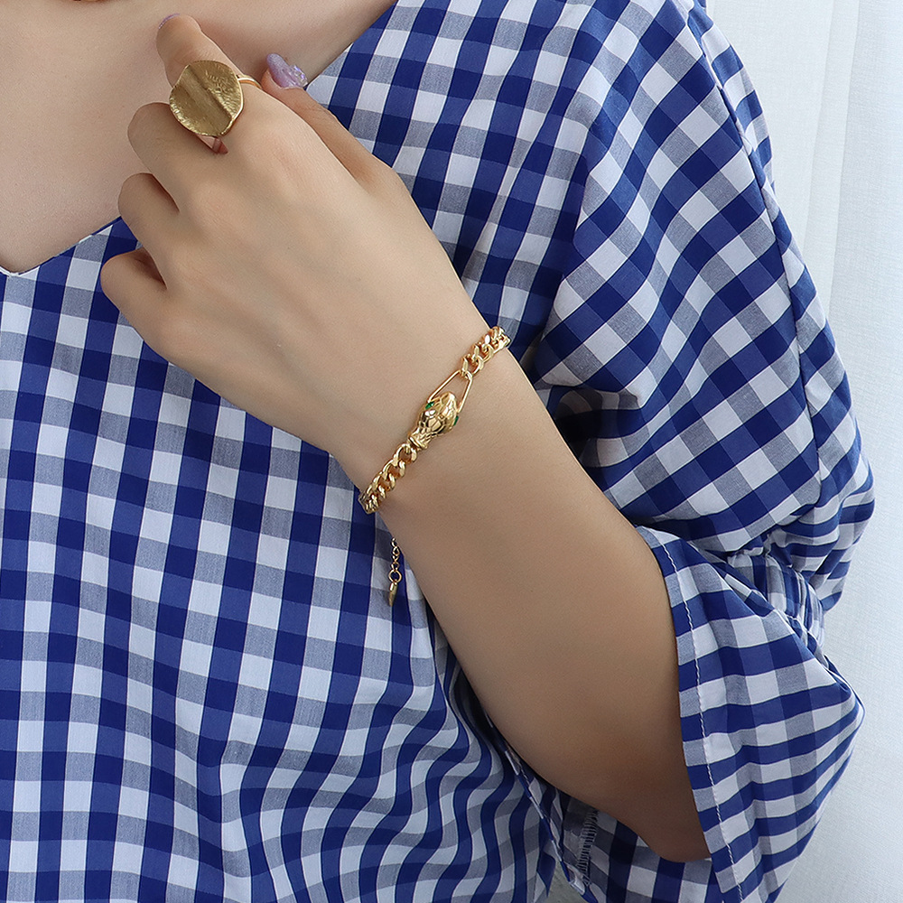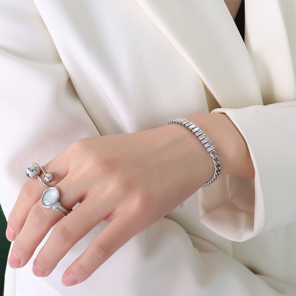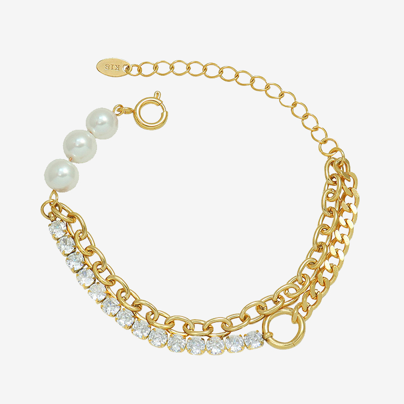Double Layer Curb Chain Splicing Gemstone Bracelet
