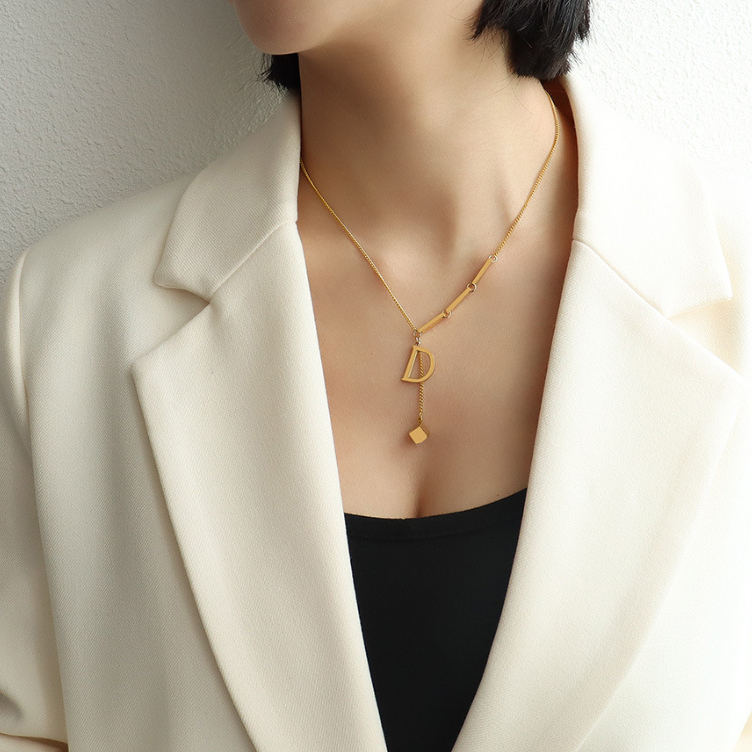 Letter D With Brick Shape Pendant Asymmetric Necklace