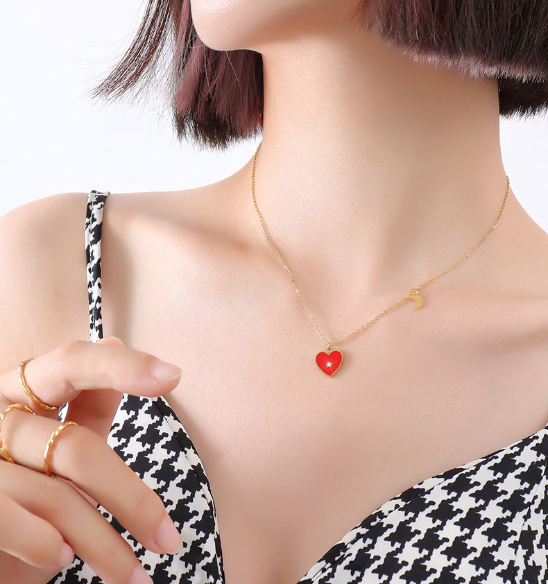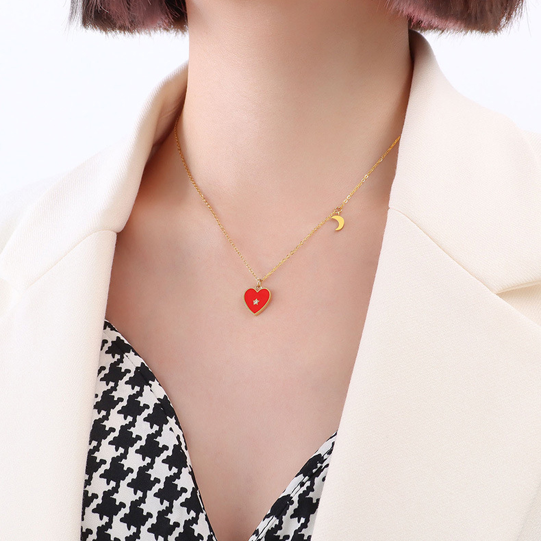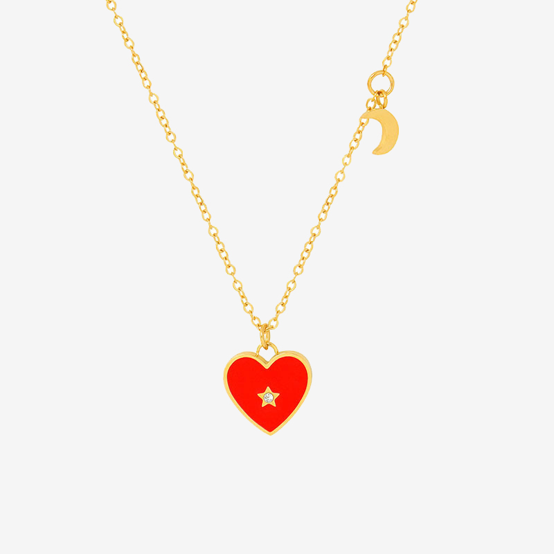 Red Heart With Central Diamond Necklace