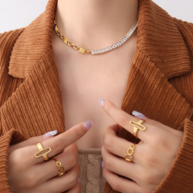 Square Shape Diamonds Splicing Asymmetric Chain Necklace & Bracelet Set